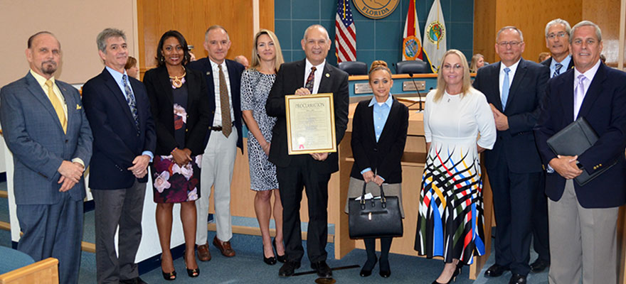 At the Palm Beach County Board of County Commissioners meeting on May 7, 2019, Commissioner Weinroth presented a proclamation declaring May 2019 as Ethics Awareness Month in Palm Beach County. Pictured here (l to r):