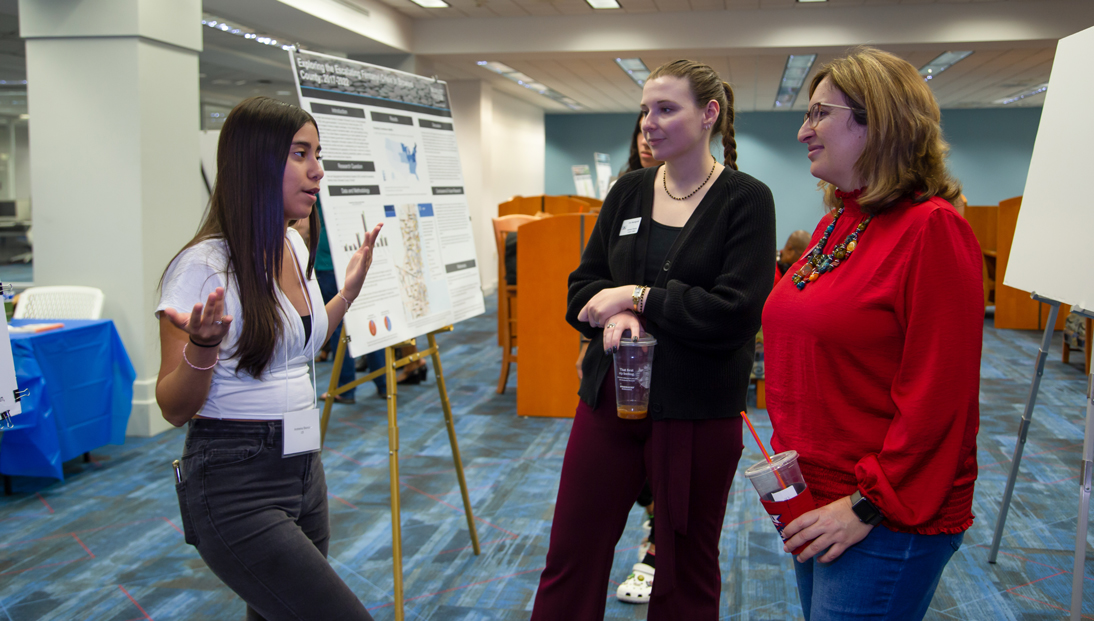 Students engaged in research and scholarly activity presented their findings either through poster presentation or an oral presentation. This year’s symposium was not juried to encourage more participation from 太阳城娱乐 students and students from other neighboring higher education institutions.