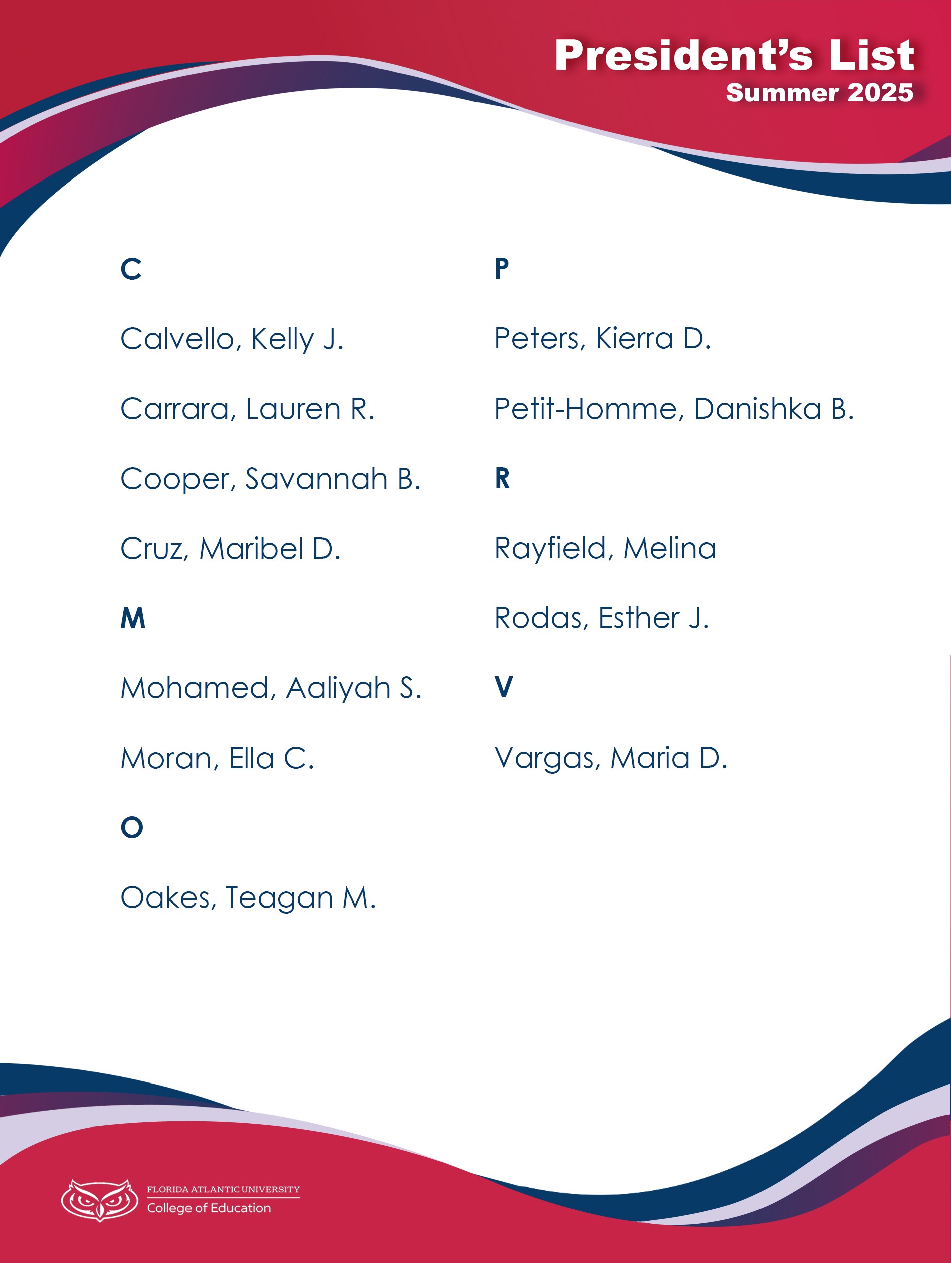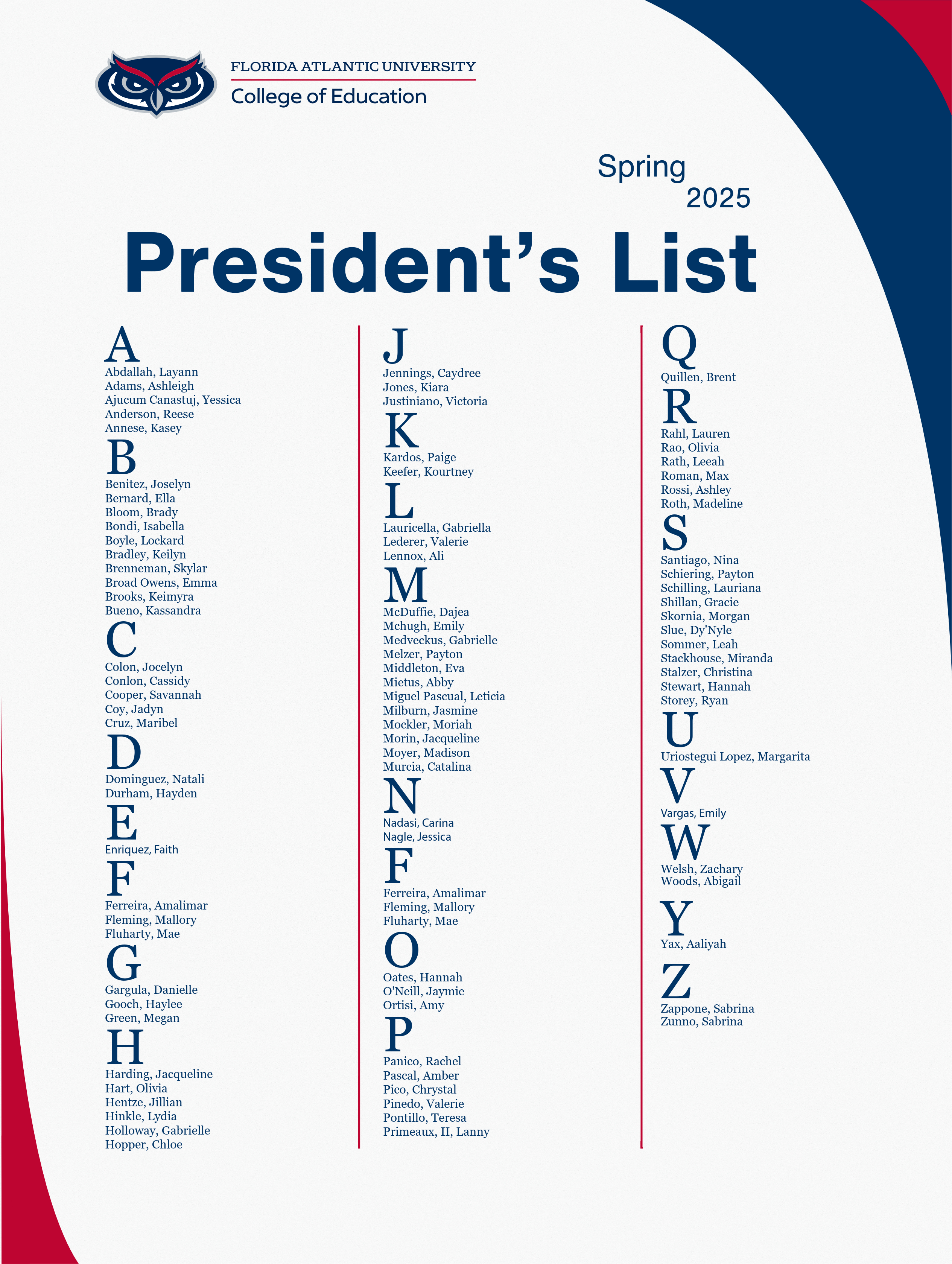 College of Education President's List