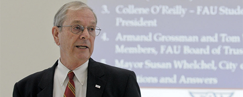 The search for the seventh president of Florida Atlantic University came to a successful conclusion on Friday, Jan. 17, when the Board of Trustees voted unanimously to award the position to Dr. John Kelly. He is currently Vice President for Economic Development and Director ...