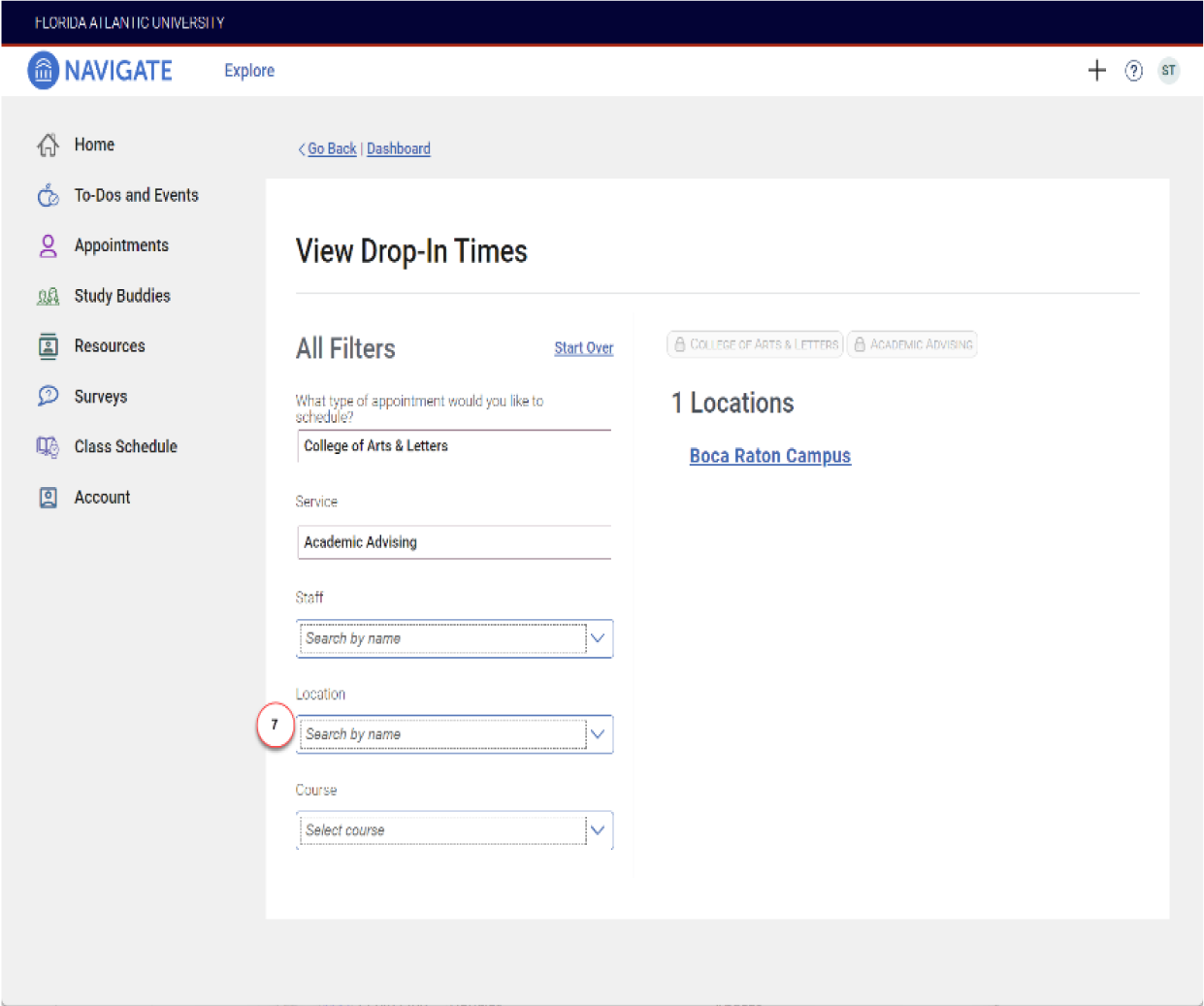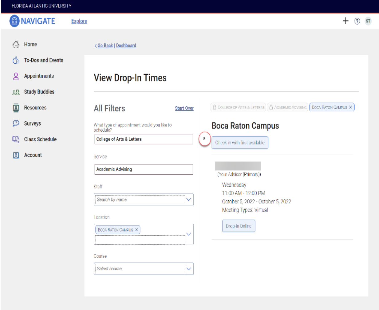 a. Select Stop-in Academic Advising (Phone) – The advisor will call you (you MUST enter a phone number in the comments)