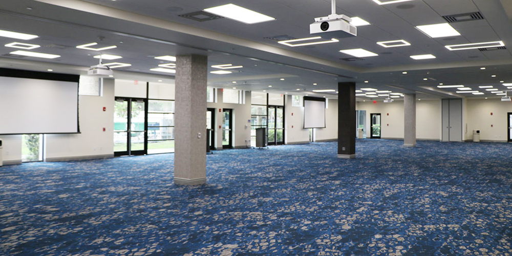 Located on the first floor of the Student Union, the Grand Palm room offers 6000 square feet of space conveniently tucked away from the main foot traffic of the building, and is avilable for a wide variety of events. The room is highlighted by architectual columns that serve as both a feature and focal point of the space.