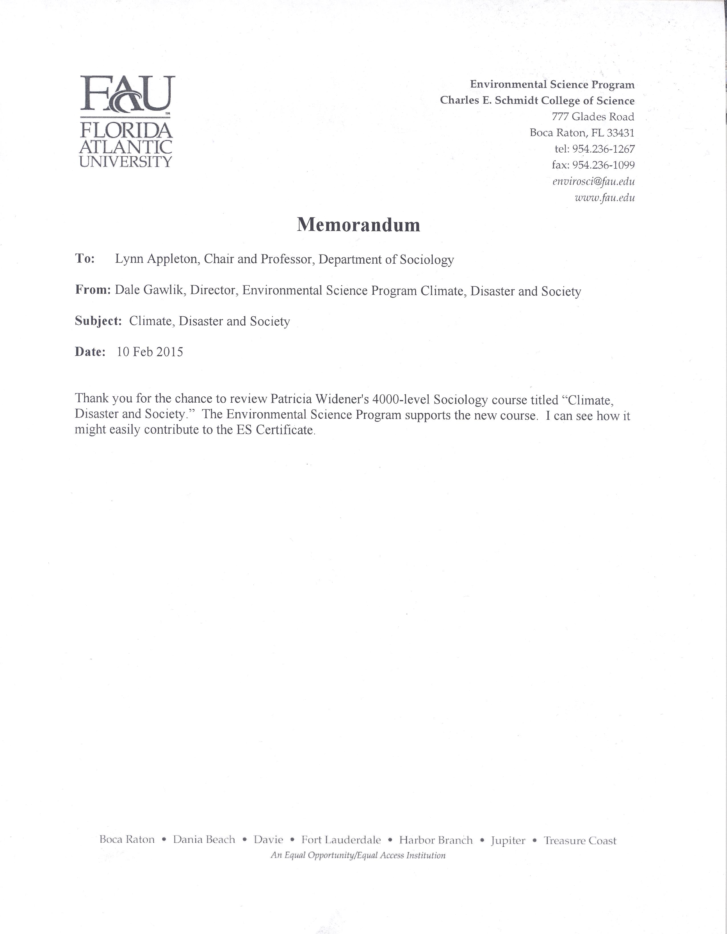 Climate, Disaster and Society (Remained tabled at Sept. 4 meeting.) |